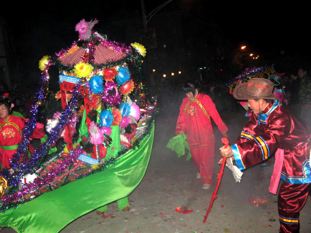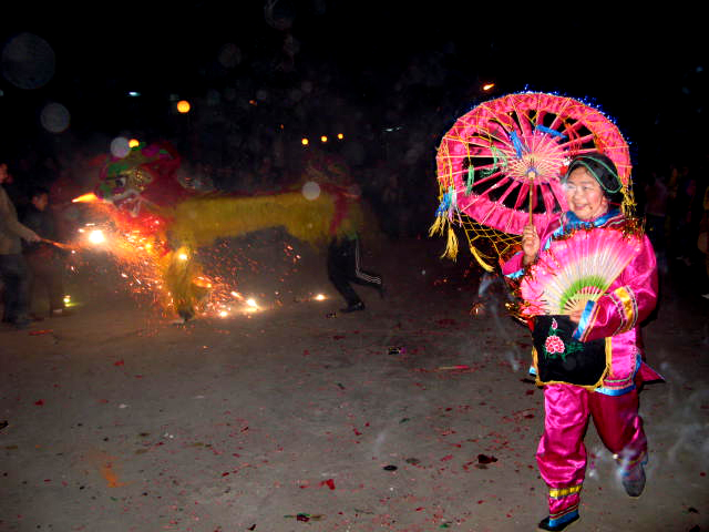 正月初七,古神话中“人胜节”,人类的生日,这天晚上白柳镇街道锣鼓喧天、 烟花四射、 灯火齐鸣、 狮腾船舞, 热闹非凡。