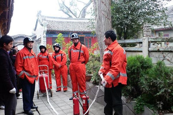组织职工系统学习文物法规及安全法规,做到法规学习经常化、深入化,让职工充分认识消防安全工作的重要意义,使重视安全、搞好消防的观念深入人心。成立了由管所领导及安保人员组成的“安全工作领导小组”,实行分工负责。制定完善了《安全管理制度》、《文物藏品保管制度》、《馆长职责》、《保卫人员职责》、《值班人员职责》等各项规章制度,并与全馆职工签订《职工用火用电安全责任书》。并重新修定了《重大接待安全应急预案》、《防火、重大自然灾害应急预案》和《突发事件应急预案》,在职工会上进行讨论后予以公布,要求每位职工牢记自己的“应急岗位”,各司其职。举行现场演练,实际操作。使每位职工熟练掌握灭火器、消防栓、消防水泵、消防水带、消防水枪的正确使用方法;熟练掌握监控平台的常规性操作,了解单位配电箱内各个空气开关所控制的区域,一旦出现险情,达到正确操作排险。