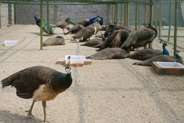 旬阳县棕溪镇红号村务工青年刘胜斌,学校毕业后常年在外务工,得知在全市养殖孔雀数量较少,属杂食性鸟类,饲料成本低,山区气候适宜且市场前景较好。刘胜斌同妻子到福建、湖北、山东、河南实地考察,确定回乡养殖孔雀。 2008年12月,刘胜斌按每组3000元钱引进蓝孔雀20组(一只雄鸟三只雌鸟),共60只进行养殖,建圈舍120㎡,投资12万元。谈到今后打算,刘胜斌信心十足:“按每只雌鸟年产蛋20—30个,每个80—120元,每只鸟年收入达3000元,年可收入近5万元,今后将以繁殖为主,进一步扩大养殖规模,与厂家签订合同,实行订单销售。”刘胜斌正在建设新的圈舍,增加规模和养殖品种,将从山东引进1500只七彩山鸡,从四川引进3头野猪(种猪1头,母猪2头)进行繁育,逐步走上规模化养殖,打开野生动物市场。