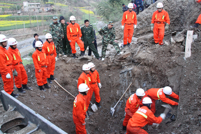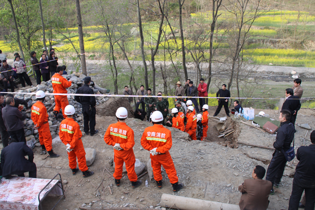 接到报告后,旬阳县委书记马赟、县政府县长邹俊杰当即指示“全力抢救被埋人员!”县公安局政委郭清水、城关镇党委书记来显毅、镇长许明武现场指挥,公安、安监、民政、国土等相关部门及时赶到现场救援。14:20旬阳消防中队接警出动,14:50到场施救。安康消防支队15:20接到报告,政委苗文岐带领参谋长方斌、司令部参谋张昊赶赴现场。