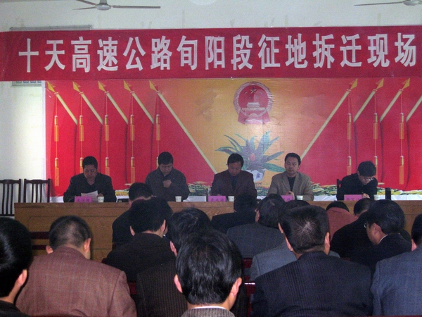 十天高速项目是国家拉动内需大环境下开工的重点项目,对地方经济的长远发展意义重大。旬阳县委、县政府高度重视,迅速启动,强化措施,夯实责任,超前安排,精心组织,确保了4月10日完成永久和临时征地拆迁补偿资金兑付,5月上旬全部拆迁完,交付红线用地。十天高速旬阳段所经金寨、神河、吕河、桂花、段家河、城关6个乡镇。据统计,拆迁户达589户,拆迁面积达10万多平方米,任务重,时间紧。截至3日,金寨乡已按县上要求提前10天完成红线内征地任务,共征地1630亩,协调临时用地10处近百亩。确定红线内拆迁184户,拆除成品宅基地16宗。临建户调查摸底、征迁回头望及公示工作正在进行。其他各乡镇的征地拆迁工作底子清、思路明,各项工作有序进行当中,在会上均纷纷表态按期完成任务。
