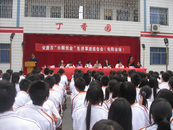 4月9日下午,市“巾帼创业”先进事迹巡回演讲报告会在旬阳职业中学举行。全市5名优秀创业女性, 为职中2500余名师生及我县部分农家乐、女老板作了一场感人至深的创业事迹报告。市妇联副主席汤萍出席会议,县委常委统战部部长田丽萍主持会议,副县长李萍到会致欢迎词,。