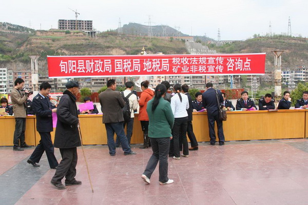 4月3日,旬阳县地税局、国税局、财政局三家联合走上街头,在城区人流较为集中的县城祝尔慷广场设立税法宣传咨询点,为过往群众宣传讲解税收政策,由此拉开全国第18个税收宣传月活动序幕。活动当天共计发放税法宣传资料3000余份、刷写标语15幅、散发《致全县纳税人的公开信》1封200份、制发税收宣传短信1条、组织税法宣传小分队2支、接受现场咨询500余人次。