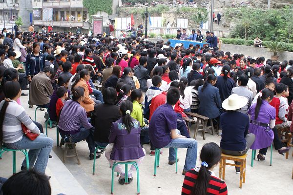 4月30日,在旬阳县棕溪中心校操场, 400余名学生及他们的父母共同参加了一次特殊的家长会。2个半钟头的时间,让他们获得了法律法规、务工维权、安全、学生饮食卫生、春季流行性感冒的防治等知识,现场倾听了公安、卫生、工商等部门专业人员的生动讲解。一位家长告诉笔者:“今天的家长会开得好,在与老师交流的同时还与孩子一起学到了很多知识。”
