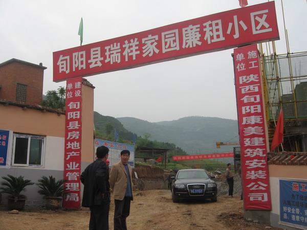 近日,在旬阳县城党家坝社区的一处建筑工地上彩旗招展,吊塔在忙碌的起降,工人正在热火朝天、紧锣密布的施工,一幅繁忙的景象。这里正在建设的是廉租住房小区,是旬阳县为贯彻落实中央的惠民政策而实施的重点民生工程之一。目前开工的廉租住房一期工程将建设15000平方米,2009年年底即可完工交付使用,届时约300户住房困难家庭可搬进新居。