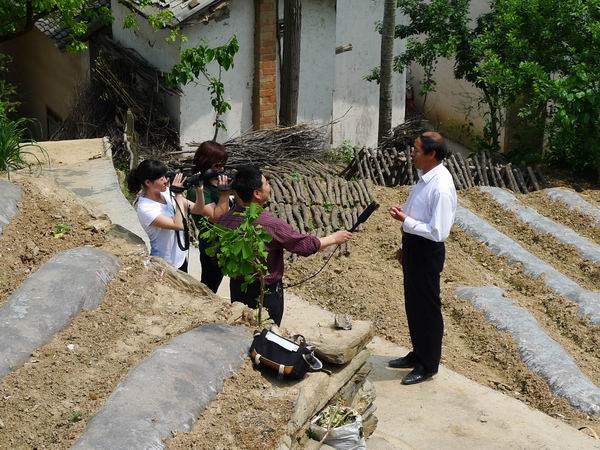 一大早,剧组的同志们不顾旅途的劳累沿着崎岖的山间水泥路出发了,一路上大家谈论者电影的制作体会,感受者王院村一年来的新变化,5月的王院村满山遍野绿树青草郁郁葱葱,层层梯田里成熟的油菜籽点头微笑、白色地膜像绿色山峁系上了条条玉石腰带、经济林里挂满了红珍珠似的樱桃;绿荫丛中淋漓梯次的楼房再现者王院人的生活变化。