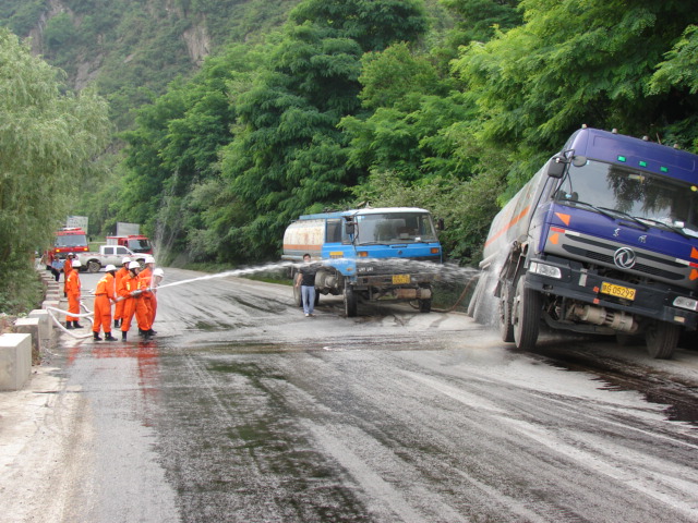 事故发生后,旬阳县政府常务副县长陈德智在第一时间奔赴现场,指挥救援处置工作,公安、消防、交警、安监、环保、公路、交通等相关部门联合行动,全力以赴实施救援,并启动了化危品事故应急处置预案,要求现场公安、交警加大警戒力度和范围,对该路段实行封道隔离,对于距离现场较近的明火当场进行消除,禁止无关人员入内,同时做好防静电措施;禁止现场任何人员吸烟、使用手机、穿钉鞋、挂钥匙串等,排除一切不安全因素;在槽罐车四周继续用水雾稀释,防止扩散,及时将事故车中的柴油转移到其它车辆,对事故车拖离事故地点。