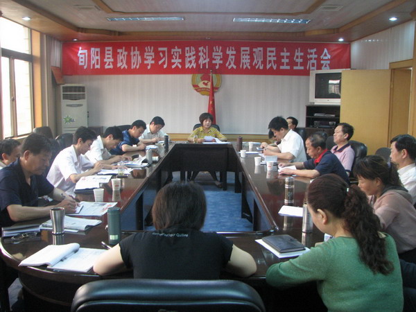 6月9日,旬阳县政协召开学习实践科学发展观专题民主生活会。会议由政协党组书记、主席王惠同志主持,政协副主席党永前、朱远胜、向敏毅和机关全体党员干部参加了会议。