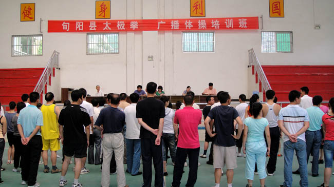 为推动我县全民健身活动蓬勃开展,6月22日至26日,由县体育局组织牵头,聘请专业教练对各乡镇、各部门选派的65名群众健身指导员进行了为期一周的太极拳和第八套广播体操培训,并经过现场展示,全部通过结业考试。县政府副县长李萍到现场观看了考试情况,并为学员颁发了结业证书,同时要求每位健身指导员在今后工作中,克服各种困难,认真履行职责,提高自身水平,全面完成全民健身活动的各项工作任务,为提高全县人民的健康水平、构建和谐旬阳做出自己应有的贡献。
