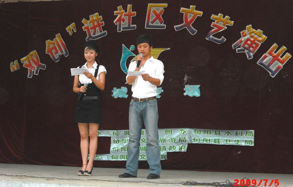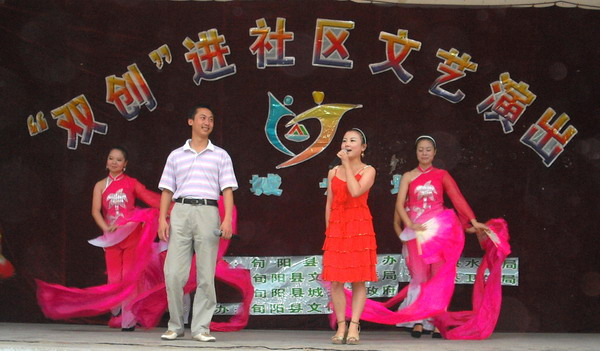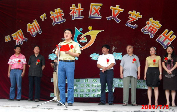 7月6日晚,县城体育场欢歌笑语,车水马龙,好一派热闹非凡的景象,旬阳县“双创”文艺演出进社区活动在这里隆重举行。本次演出活动由县双创办、水利局、文化旅游局、卫生局、城关镇五家单位联合主办,由县文化馆文艺演出队具体承办。县委常委、宣传部长,双创指挥部副总指挥王武臣出席本次活动,并作重要讲话。