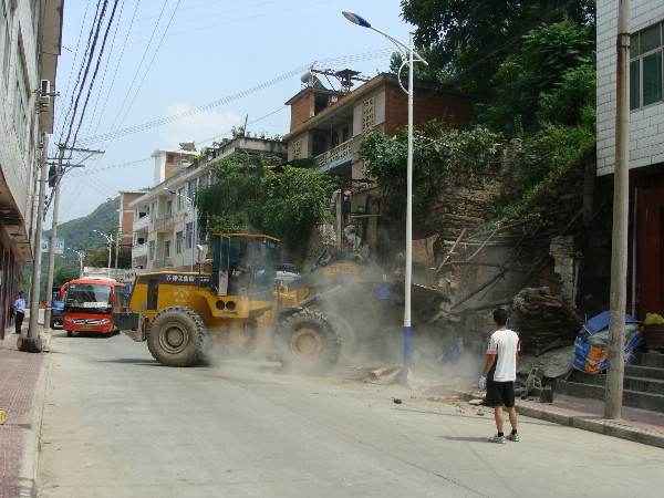 随着挖掘机的隆隆推进,一间间紧挨公路、残破不堪,严重影响道路通行能力及观瞻的违章建筑应声倒下,拥挤的集镇道路又恢复了往日的顺畅。