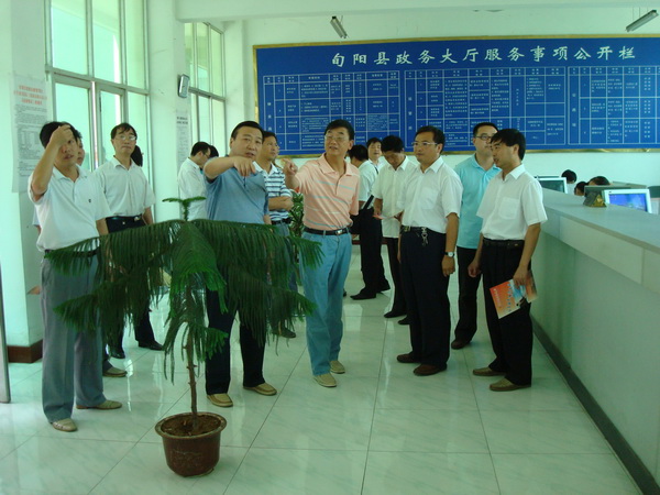 在县政务大厅,考察团一行各位领导参观了各个办事大厅,听取了大厅办公室工作人员对我县政务大厅工作特别是并联许可制度实施情况的汇报后,对我县政务大厅工作给与了高度评价。