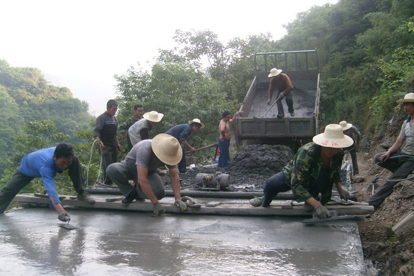 炎炎夏日,挡不住铺路大军前进的脚步。旬阳县沙阳乡双河口村通村水泥路激战正酣。