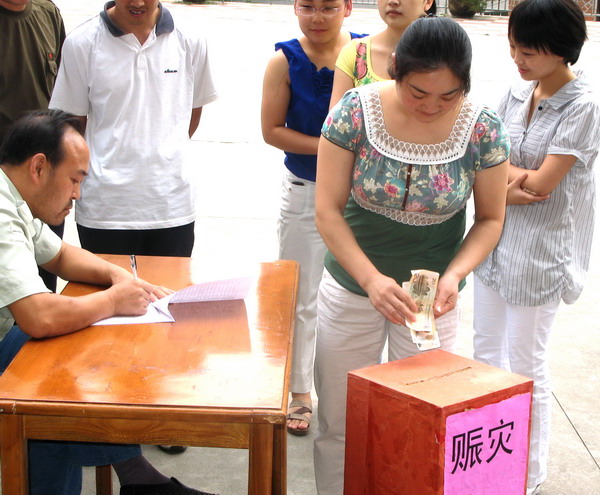 夏末初秋,天蓝水清,秋高气爽,正值我们大陆同胞享受一年中的大自然之乐的时候,却在8月8日,我国台湾遭遇“莫拉克”台风肆虐。通过电视、网络等新闻媒体悉知,这是台湾五十年一遇的特大灾害。目前受难人超过500余人, 7000多人无家可归,财产损失达到逾新台币500亿元。“一方有难八方支援”,这是中华儿女既往就有的优良传统。面对华诞骨肉同胞遭遇如此磨难,损失如此惨重,白柳镇迅速开展向台湾灾区献爱心募捐活动,镇全体干部发扬了华夏儿女应有的传统美德,踊跃参与、慷慨解囊,把一双双援助之手伸向募捐箱,伸向台湾受灾人民,仅两个小时全镇60余名干部共计捐款5000余元。在党员和干部的先导作用下,带动了一大批街道居民和街道小商、店户,捐款仪式虽结束,但捐款活动却转移到镇民政办公室继续在进行。