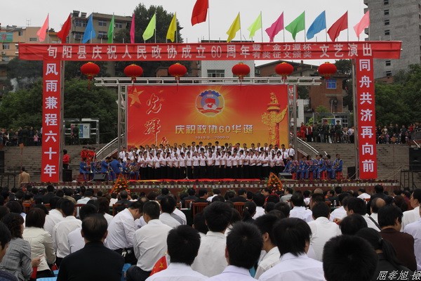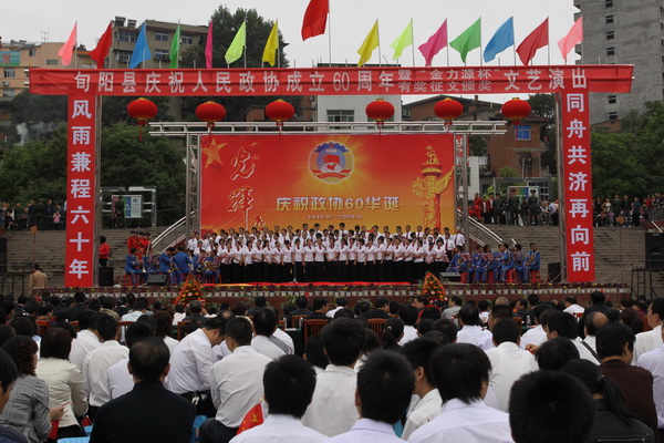 旬阳县庆祝人民政协成立60周年大会上午在祝尔慷广场隆重召开,大家欢聚一堂,载歌载舞共同回顾人民政协走过的60载光辉历程,展望人民政协事业的光明前景。县政协主席王惠主持大会。县委书记马赟在大会上做了重要讲话。