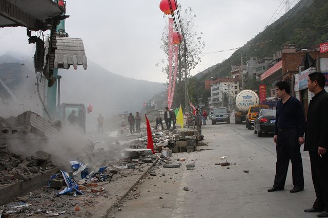 为了确保汉江蜀河水电站首台机组11月30日顺利发电,今日上午,城关镇上渡口汉江边上的33户移民集体和谐拆迁,房屋拆除约4500平方米。