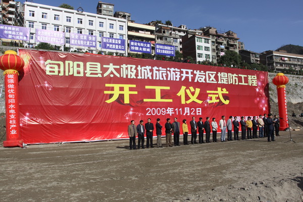 11月2日,旬阳太极城旅游开发区内堤防工程和观景区景观工程两项目开工建设。马赟、陈昌学、邹俊杰、王惠等县上领导出席了开工仪式。