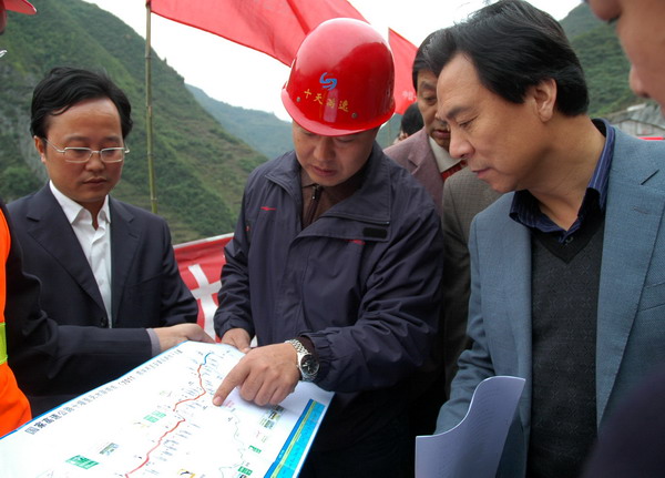 11月3日,省发改委副主任权永生带领省重点项目督察组到旬阳县视察重点项目建设工作。市长助理李春临、县委书记马赟、县委常委、常务副县长陈德智、县委常委、政法委书记王道祥等市县领导陪同了视察。