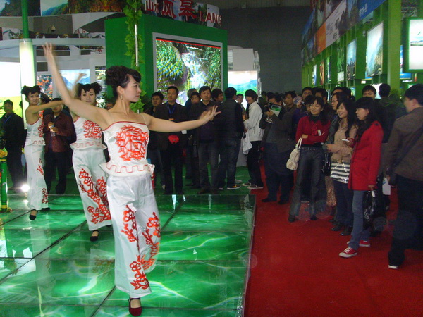 日前,第二届陕西旅游商品博览会在西安绿地笔克国际会展中心隆重举行,我县组团参加了此次盛会。旬阳展馆布展的狮头柑、緑壳蛋、黄姜粉丝、羊山清泉矿泉水等具有浓郁特色的旅游商品,吸引了众多观众和客商驻足。参展期间,工作人员还向前来展馆咨询、洽谈、参观的客人发送了旬阳招商项目册、投资指南册、旅游扑克牌等宣传品,强力对外推介旬阳。