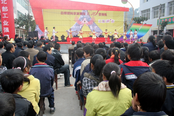 会后,所有参与“听课”的党员干部还到白柳镇中心广场上观看了白柳镇组织的“科学发展观文艺汇演”。演出结合科学发展观,通过贴近生活、寓教于乐的文艺演出形式,向广大农村党员干部群众宣传科学发展观,营造氛围,转变思想,增强贯彻科学发展观的自觉性和坚定性。
