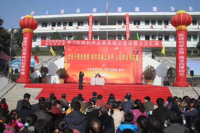 12月29日,旬阳县委书记马赟、县委副书记曾朝阳、县政府副县长李萍来到构元乡指导该乡学习实践科学发展观理论宣讲活动,在构元乡初中现场聆听了该乡理论宣讲团的宣讲。