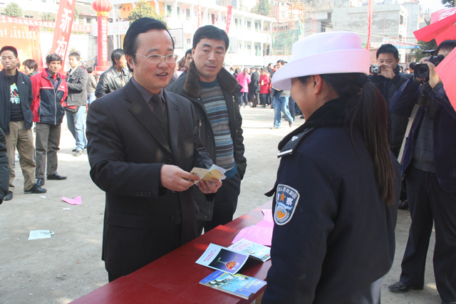 宣讲会前马赟、曾朝阳、李萍来到在构元乡初中操场上设立的卫生健康服务点、义务教育、交通法规、林改政策等宣传点,亲切与工作人员交谈,充分肯定了该乡这种为民服务的工作形式。