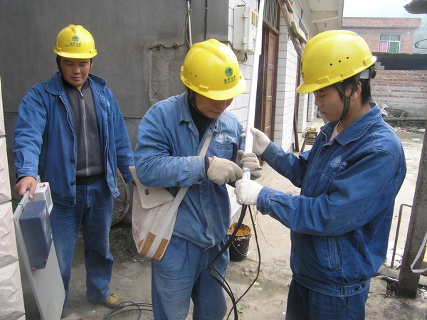 该局为确保供电工作万无一失,制定了预防措施,将重点统筹安排调度中心、通信和自动化班、城区配电营业厅、城郊供电所等重要单位的相关人员加强值班,做好事故预想,做好抢修准备;要求变电运行人员熟悉保供电方案,做好事故预测,并在节前对重要设备进行一次全面的巡查;安排输电相关工作人员在节前对关键线路进行重点巡视和检查,及时发现可能存在的问题并加以整改。同时,还着重针对重要活动场所和博物馆旅游点的保供电工作,确保春节期间广大群众和重要场所用电有保障。图为城郊供电所正在检修用电线路。