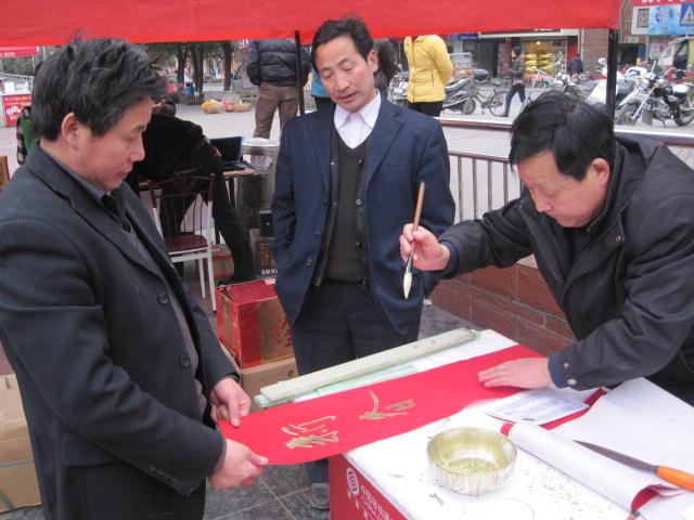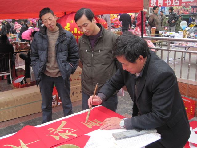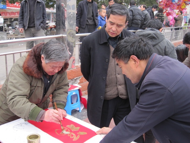 旬阳楹联学会与移动公司联合开展义务写春联活动