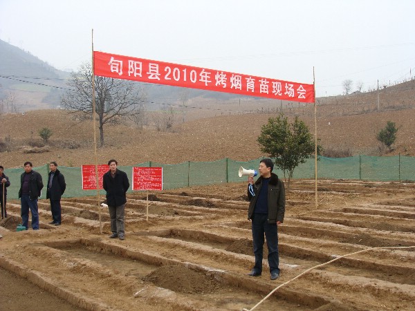 为认真做好2010年烤烟标准化育苗工作, 2月23日,全县2010年烟草育苗现场会在甘溪镇十字岭千亩烟草科技示范园召开。县政府副县长陈刚,各务烟乡镇烟站负责人、县烟草局相关人员参加会议,这标志着旬阳县新一年的烤烟生产工作正式拉开了序幕。