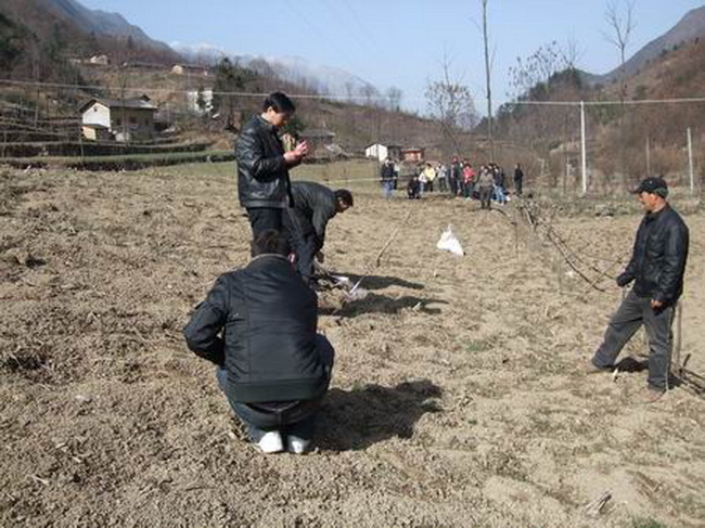 阳春三月,铁厂村到处都是一片繁忙景象,村民们正在千亩连片的规划地块上挖坑、栽苗。35名乡村组领导干部投入到这场核桃种植战中,并实行领导干部包干负责制,成立了4个领导小组,分别由一名乡领导挂帅,负责片区相关工作的指导、协调和督促。同时,成立了技术指导组,林业技术人员在规划地块上拉线定距,规范挖坑,亲自给群众做示范。目前,该示范点已栽植核桃树苗750亩、30000余株,育林坑开挖工作仍在紧张进行中,预计三月底将全部栽植到位。