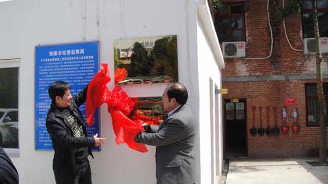 市纪委副书记、监察局长钟庆明和旬阳县政府副县长范化冬为安康市监察局派驻西康铁路增建二线项目监察室揭牌。