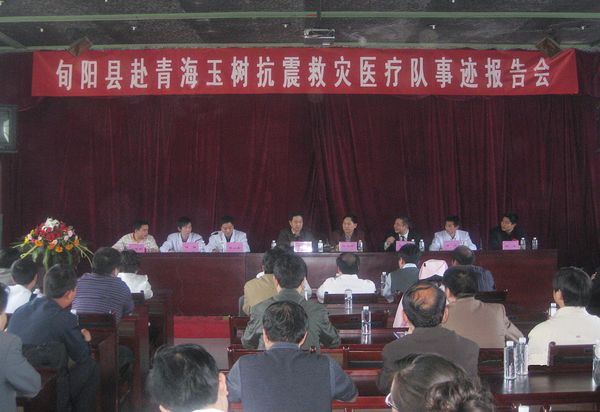 4月28日,旬阳县赴青海玉树抗震救灾医疗队事迹报告会在县医院五楼会议室隆重举行。县卫生局局长张先平、党委书记冯常义、县医院院长王存山及卫生系统广大卫生系统150多名干部职工聆听了抗震救灾医疗队的先进事迹报告。