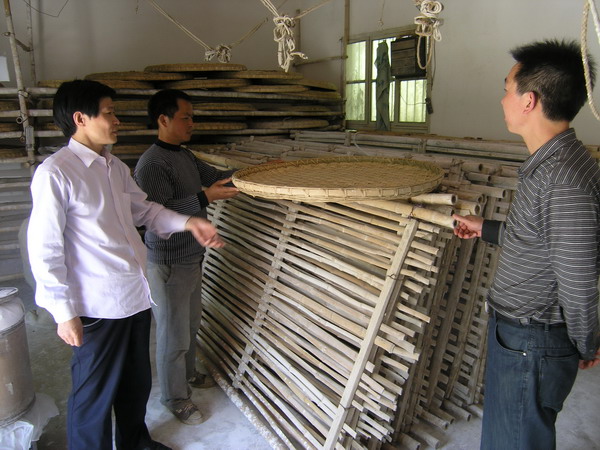 为了提高兴桑养蚕技术,增加经济效益,旬阳县甘溪专业合作社把提高蚕农科技兴桑养蚕作为重点来抓,深入村组举办蚕桑技术培训、印发技术资料、组织播放VCD科学兴桑养蚕光碟。通过抓培训、抓指导、抓宣传,极大地提高了社员兴桑养蚕的科技含量,提高蚕茧质量、产量,增加农民收入。图为甘溪专业合作社工作人员走村入户指导蚕农对蚕室进行消毒,为养蚕做好准备工作。