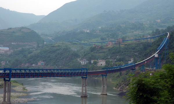 在随后召开的安康市尧柏水泥有限公司管带机项目座谈会上,县委副书记曾朝阳致辞,县政府副县长张继盈作了讲话。据了解,该公司使用的管带机系统由四川自贡运输机械有限公司设计建设,于2008年5月开工,2009年11月11日建成运行,各项指标均达到设计指标,运行正常。管带机项目总投资1.2亿元,全长7.3公里,翻越3座山、横跨两条河、下穿西康铁路、上跨102省道,最高达78米。设置27个电子监控点、最大坡度18度,是“世界工况最复杂、输送量最大、亚洲第一”的皮带廊工程。自管带机投入运营以来,系统运行稳定可靠,环境噪音低,无排尘扬尘,无安全隐患,物料运输高效,统有效地解决了石灰石运输的环境污染、交通安全及受天气制约等瓶颈问题,实现了经济效益、环境效益和社会效益的大丰收。