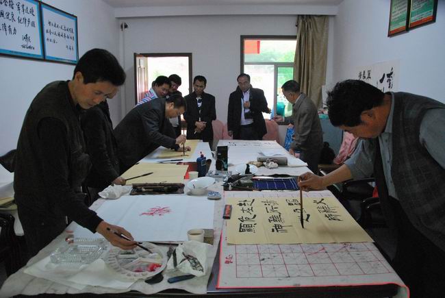 该县书法协会、美术协会和作家协会的20多位会员代表出席活动,并现场挥毫泼墨,为驻旬消防官兵创作奉献书法、绘画作品近百幅。县作家协会的代表还现场向消防中队赠送旬阳本土作家近年出版的作品集20余本。