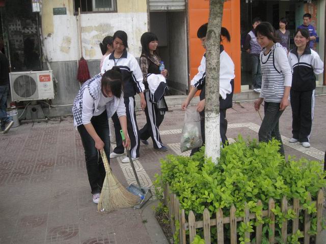 在4月份爱国卫生运动月期间,该校全体师生手持保洁工具,在祝尔康大道沿线除杂草、捡垃圾,当好县城保洁的志愿者、保洁队。