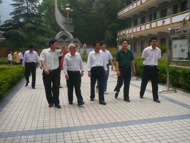 5月25日,台湾爱心人士朱应龙先生在省教育厅副巡视员张亮,省教育厅发展规划处处长朱征南,市教育局副局长武大明,县委常委、宣传部长程海林,县教育局负责人的陪同下,对2007年捐资修建的旬阳县甘溪初中绣山教学楼使用情况进行视察。