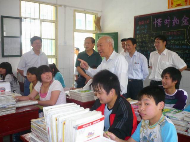 在学校会议室里,朱应龙听取了甘溪教育发展情况的汇报,并同学校教师对甘溪教育发展情况进行了交流。他动情地说,旬阳地处山区,山大人稀,学校覆盖面还不足,学生上学路途遥远,学校的硬件设备投入还很欠缺,希望全体师生能够克难奋进,希望政府和社会能一起行动起来,努力改变山区的教育面貌,为山区孩子的学习生活奠定良好的基础,尽可能地让农村孩子享受到城里孩子一样的教育。”当得知我县各小学都已开齐开足英语和计算机课时,老人感到非常欣慰,他语重心长地说,孩子们一定要珍惜机会,从小立志奋斗,做到好好学习,天天向上,不辜负党和国家的期望,不辜负学校的养育之恩。并专程前往镇中心学校对在校食宿的小学生进行看望慰问。