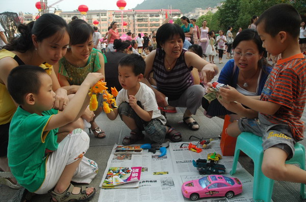 连日来,一到下午,旬阳县第二幼儿园的家长们都带着自己的孩子走出家门来到广场,让自己的孩子摆上“小地摊儿”,把玩过的小玩具和穿不上的小衣服贴上价格标签卖给现在需要的小朋友,同时也吸引了众多家长带着自己的孩子来此“淘宝”。看着自家的孩子招揽小顾客忙的不亦乐乎,刘女士笑着说:“这些小玩具和小衣服都是孩子小时候玩过和现在穿不上的,扔了可惜也是浪费,现在全社会都在提倡低碳生活,幼儿园开展这项活动不仅提高了小孩的社会实践能力,更让他懂得了节俭和物品循环利用。”