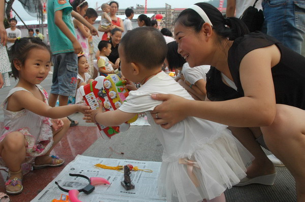 “大家快来看看,我的小玩具又漂亮又便宜”一声声稚嫩的童声在旬阳县祝尔康广场此起彼伏。这不是市场商家的叫卖声也不是商场的促销活动,而是该县第二幼儿园开展的“低碳生活从孩子做起”的社会实践活动。