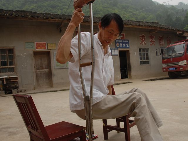 (黄世和艰难地从这把椅子挪到另一把)