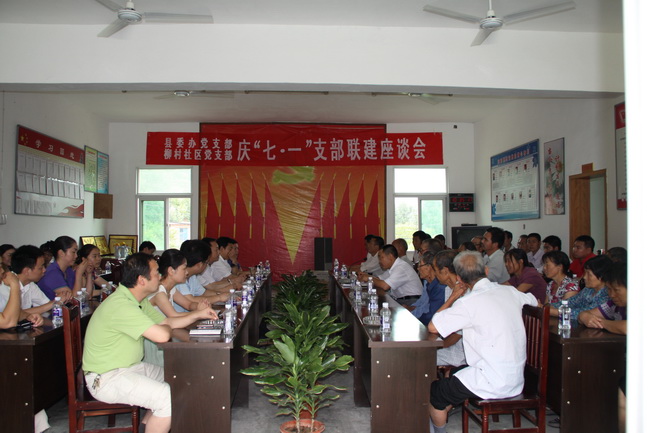 7月1日,县委办公室党支部组织机关全体党员来到白柳镇,和联建的柳村社区党支部全体党员一道,听党课,作交流,话发展,共同庆祝建党89周年。