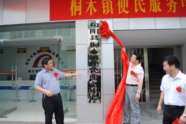 7月15日,旬阳县首个乡镇便民服务中心在桐木镇挂牌成立。县委常委、常务副县长陈德智,县总工会主席袁文勇出席挂牌仪式。