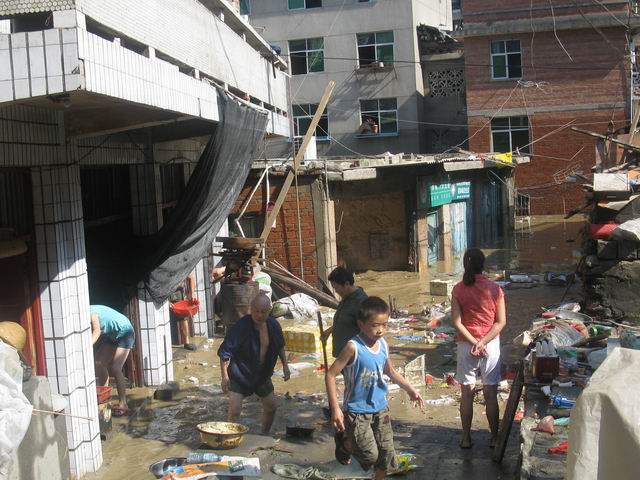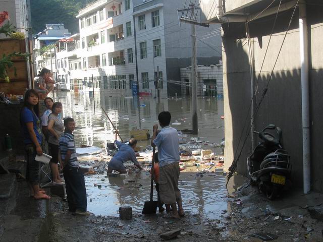 19日上午,经受30多个小时洪灾侵袭的蜀河古镇上空,迎来了久违的太阳,洪水渐渐退去,灾民陆续重返家园,生产生活秩序逐步恢复正常,老人、小孩纷纷借助即将退去的洪水清洗经房屋、清理杂物,壮年男女肩挑背扛搬回紧急转移的家具和生活用品;蜀河镇政府也组织机关干部走进街头巷尾清除淤泥、垃圾,帮助群众恢复生产生活。