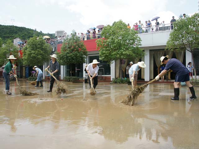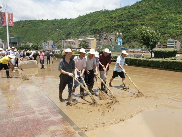 19日上午,洪水开始渐渐退去,教育局机关全体干部积极参加全县统一组织的抗洪自救义务劳动,趁洪水退去之际,清洗祝尔康广场和祝尔康大道的淤泥、漂浮物,清扫垃圾,清洗路面,帮助民众开展灾后自救,尽快恢复正常生活秩序。经过三个多小时的奋战,清扫区域面貌焕然一新。