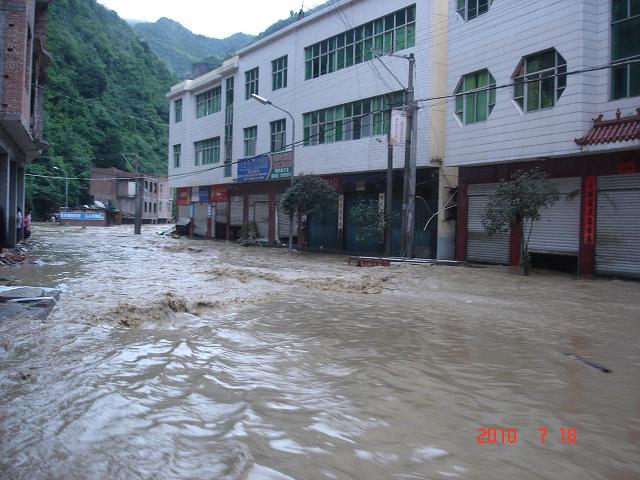 7月18日下午16时53分,县委、县政府及县防汛办发出紧急通知,坝河上游的平利和安康境内连续强降雨,坝河桂花段流量可能达到1600立方/秒以上。接到通知后乡防汛指挥部立即启动防汛应急预案,迅速通知坝河沿线居民及单位转移财物。17时30分,随着坝河水流量的增加,乡防汛指挥部立即发出一号命令,紧急撤离群众。20时,按照县委邹书记、县政府陈德智副县长、县委田常委、县政府范化冬副县长和防汛办领导的指示精神,分别组织群众安全撤离至中心学校、茨沟和高田等3个集中安置点。20时30分,流量达到1060立方/秒,洪水漫入集镇。19日凌晨3时,洪水流量达到2360立方/秒高峰时,街面浸水平均深度达到1.8米,集镇两侧所有房屋浸水,屋内和集镇上没有充分撤离的财物全被洗劫一空,集镇河堤及基础设施惨遭破坏。4时30分,洪水开始减退,6时30分,洪水完全退出集镇街面。此次洪灾乡党委、政府反应迅速,组织群众撤离及时,未造成重大人员伤亡事故,但洪水来势凶猛、流量大,转移财产时间和能力十分有限,致使集镇上8个单位177户1069人全部受灾(其中农户77户358人),单位及居民户的财产损失严重,电力、交通、通讯、网络、供水全部中断。据不完全统计,灾害造成损失1827余万元。