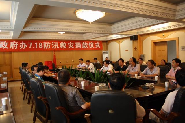 7月22日上午,县政府办积极响应县委、县政府号召,在机关会议室举行防汛救灾募捐仪式,号召并组织全体干部职工紧急行动起来,踊跃向灾区献爱心,开展捐赠活动,支持帮助抗洪救灾,现场捐款2230元 。目前,捐款还在持续中。