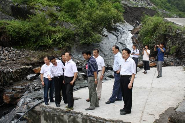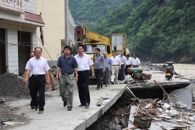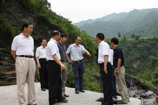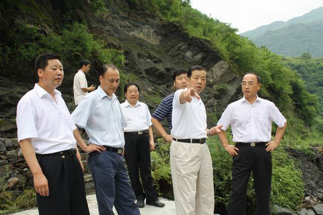 7月23日上午,省水利厅副巡视员李永杰,省供水处处长杜小洲深入旬阳县桂花乡视察灾情,指导当前生产救灾工作。市水利局局长赵继民,代县长张益民,副县长陈刚陪同检查。