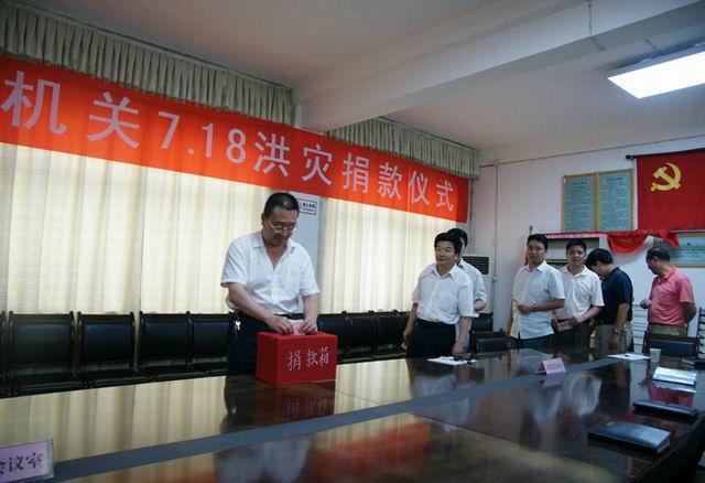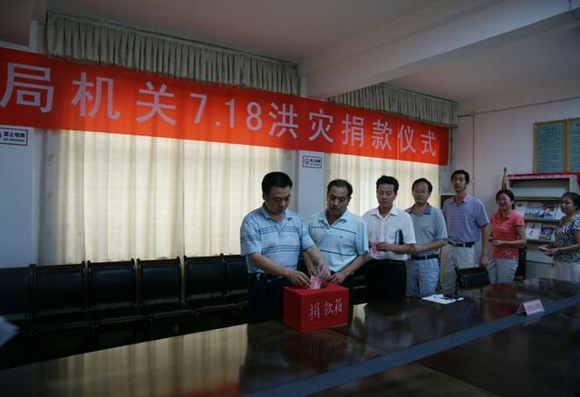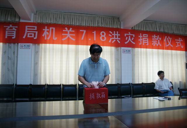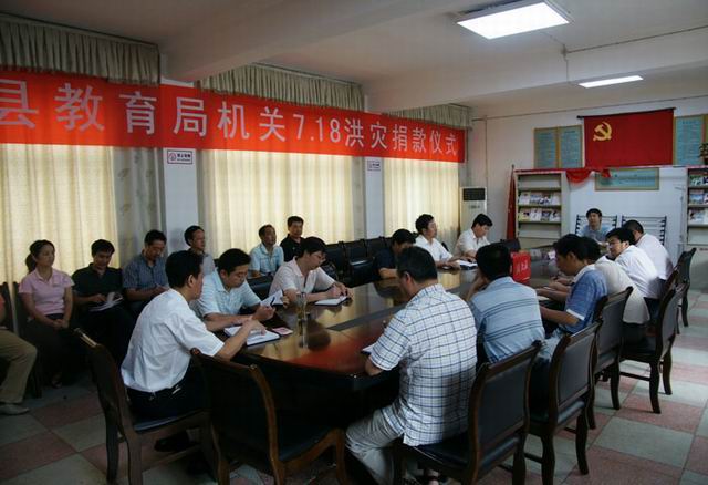 7月23日县教育局召开全体工作人员会议并举行抗洪救灾捐款仪式,局机关干部纷纷伸出援助之手,踊跃为抗洪救灾捐款,共计捐款3520元。