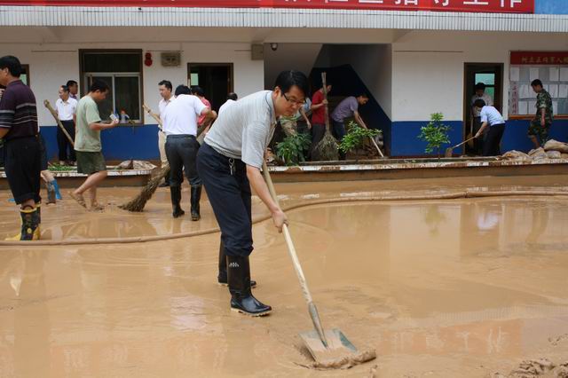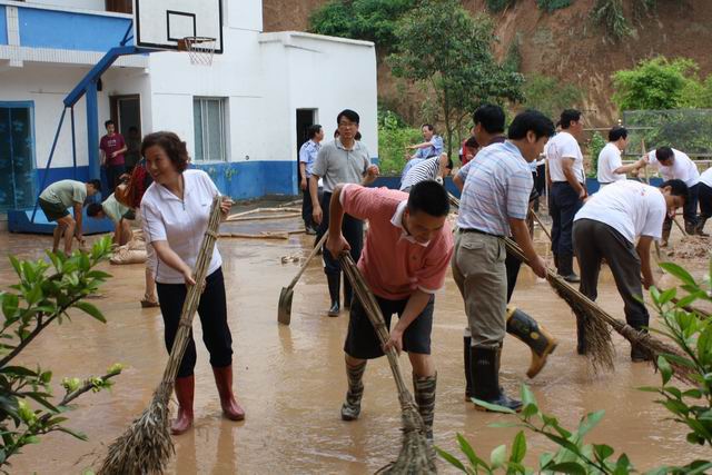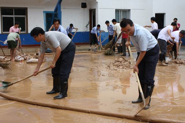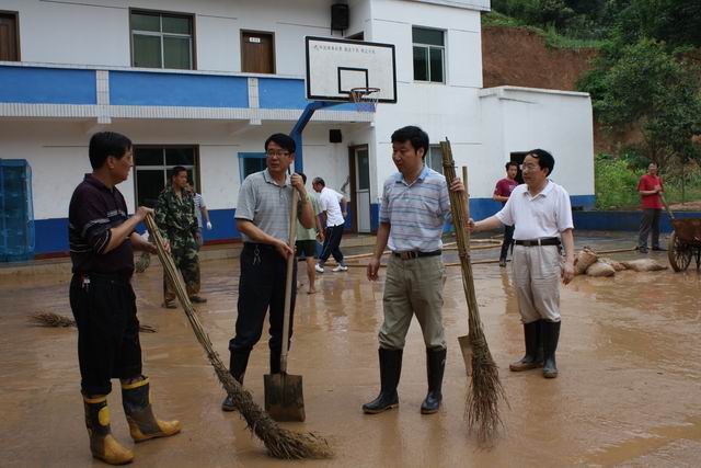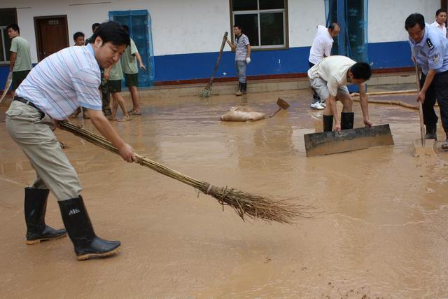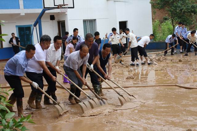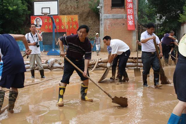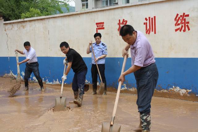 为了进一步鼓舞士气,向广大消防官兵致以最亲切的慰问,7月25日一早,邹俊杰、张益民、田丽萍、陈武文、陈守业、党永前等县上领导不顾连日来的操劳,暂时放下手头的工作,和县“四办”、民政局、公安局等多个部门自发赶来的干部职工集中前往党家坝消防中队驻地,一起紧张投入到清淤工作中来。